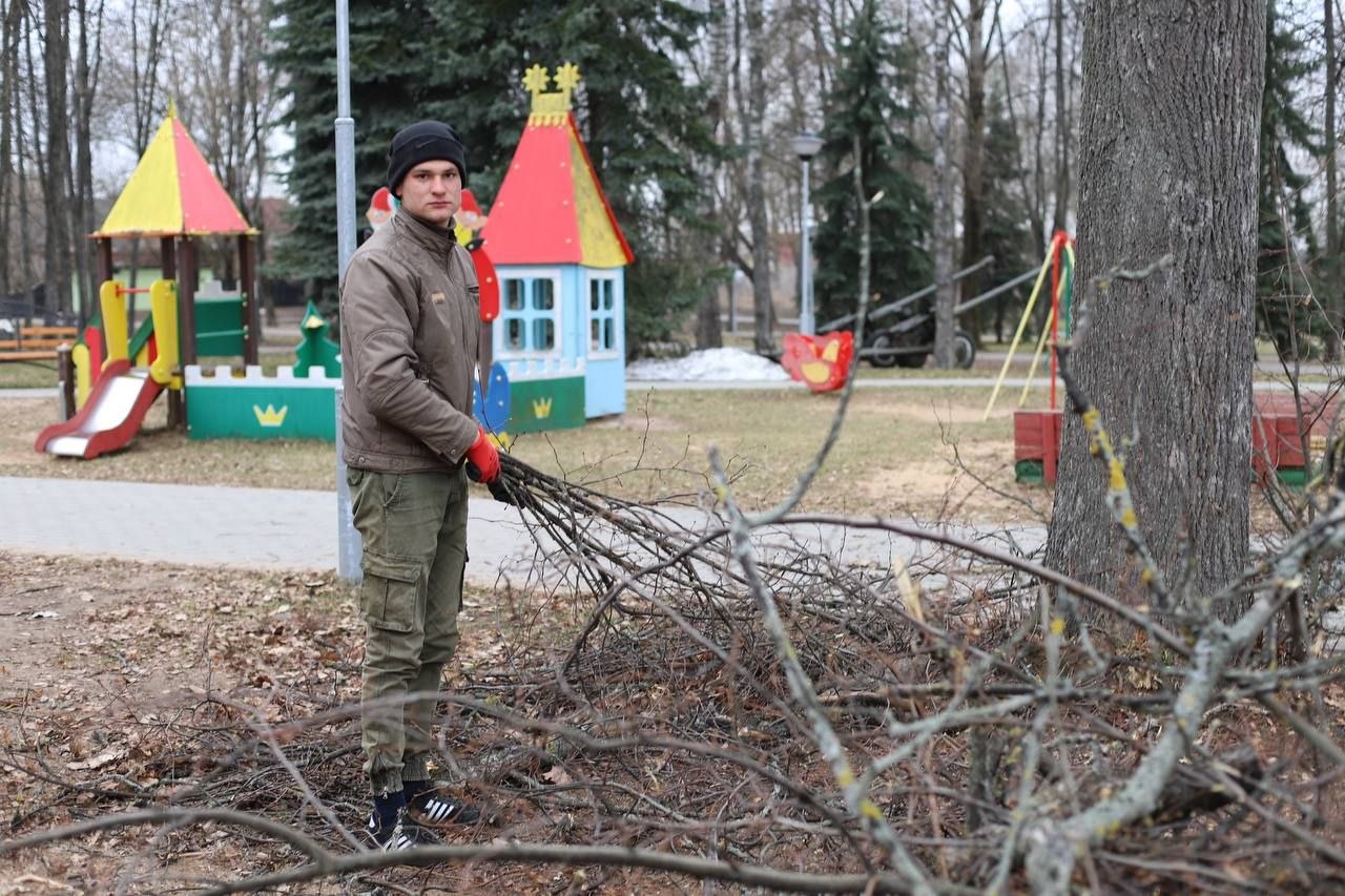 Продолжается работа по наведению порядка на земле в Лепеле. Сегодня сотрудники коммунальной службы трудятся в городском парке