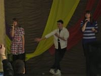 Группа с отделения «Технического обеспечения мелиоративных и водохозяйственных работ» «подкупила» жюри даже не начав свою концертную программу. Куратор Екатерина Тимошкова изготовила буклеты с анонсами и фамилиями выступающих, что позволило судейской коллегии сделать первые выводы. А вот учащиеся с «Ремонтно-обслуживающего производства в сельском хозяйстве» вообще кинули вызов залу, попросив двух добровольцев. Энтузиасты нашлись, однако улыбки на лицах сменилась озадаченностью – их попросили повторить скороговорку «Жили-были три китайца…» -- только четыре слова запомнили они, как впрочем, и остальные присутствующие. Затейник же продолжал демонстрировать навыки говорения, словно перед тем, как поступить в колледж, мечтал сделать карьеру радио- или телеведущего.