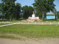 27 июля, Лепель /Соб. инф./ Центр д. Пышно заметно преображается. На месте старого деревянного забора воинских захоронений, обелиска и скульптурной композиции «Женщина и подросток» с фасадной стороны установлен бетонный.