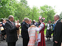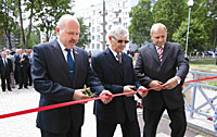 Ганаровай місіі перарэзаць традыцыйную чырвоную стужачку былі ўдастоены Старшыня Савета Рэспублікі Анатоль Рубінаў, старшыня абласнога Савета дэпутатаў Аляксандр Ацясаў, старшыня райвыканкама Пётр Шыкшнян ( на здымку).