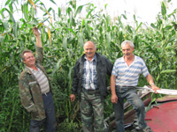 Зараз на нарыхтоўцы сіласу задзейнічаны пяць адзінак тэхнікі. Корманарыхтоўчым камбайнам кіруе Юрый Нікіфараў, зялёную масу адвозяць Сяргей Быкаў, Андрэй Трайко і Аляксандр Багдановіч, трамбуе яе ў траншэі на “Амкадоры” Аляксандр Арынахін. Кожны дзень гэта брыгада ўбірае да дзесяці гектараў. Неперадавальныя пачуцці ахопліваюць, калі бачыш увесь працэс. Камбайн ідзе па кукурузнаму масіву ледзьве бачны. Вось ён набліжаецца, і бачна, як у рэжучым механізме знікаюць высокія сцяблы, а потым з трубы роўнай плынню выкідваецца здробненая зялёная маса. Пяць-сем хвілін, і чарговы прычэп напоўнены.