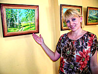 Святлана СІЛЬВАНОВІЧ, фота аўтараНа здымку: дырэктар раённага Дома рамёстваў Алена Барадзейка ля экспаната выставы Анатоля Чулкова