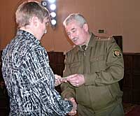 Разыходзіліся пад легендарны марш “Развітанне славянкі”, які выканаў ваенны аркестр.Уладзімір ШУШКЕВІЧ. Фота аўтара На здымках: ваенкам Васіль Шапка ўручае павесткі.