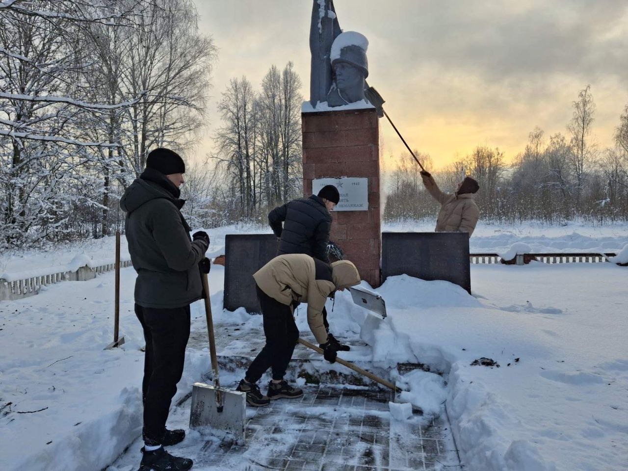 Учреждения образования проводят акцию "Обелиск" по расчистке военных захоронений, мемориалов и памятных мест от снега