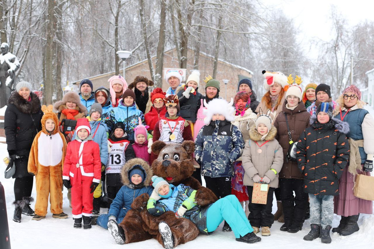 Снеговик, ведьма, лиса, цыганка, фея, медведь, лошадка и другие персонажи - в парке Лепеля прошёл Рождественский костюмированный забег