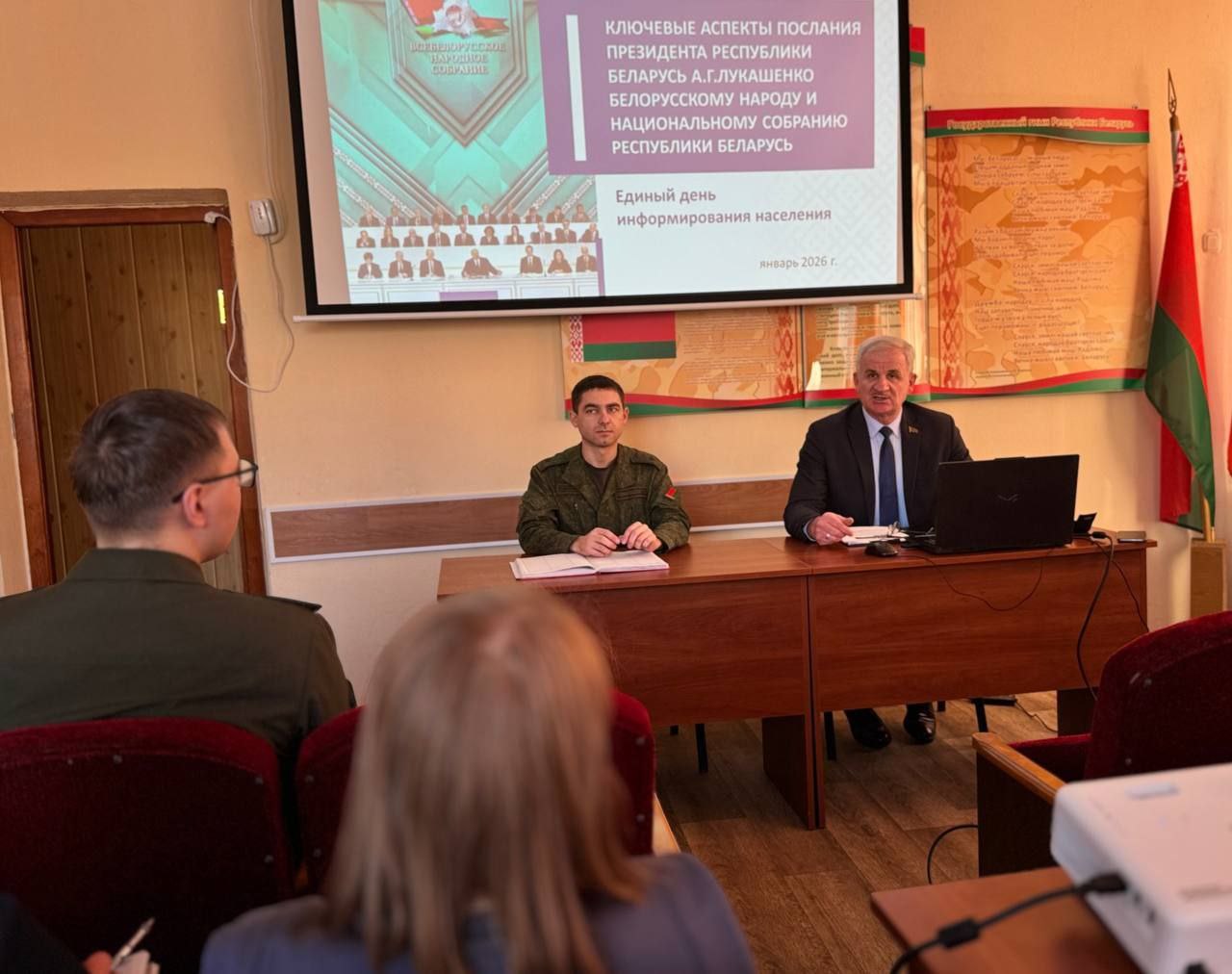В рамках единого дня информирования председатель Лепельского районного Совета депутатов Игорь Урбан провёл встречу с коллективом военного комиссариата Лепельского и Ушачского районов