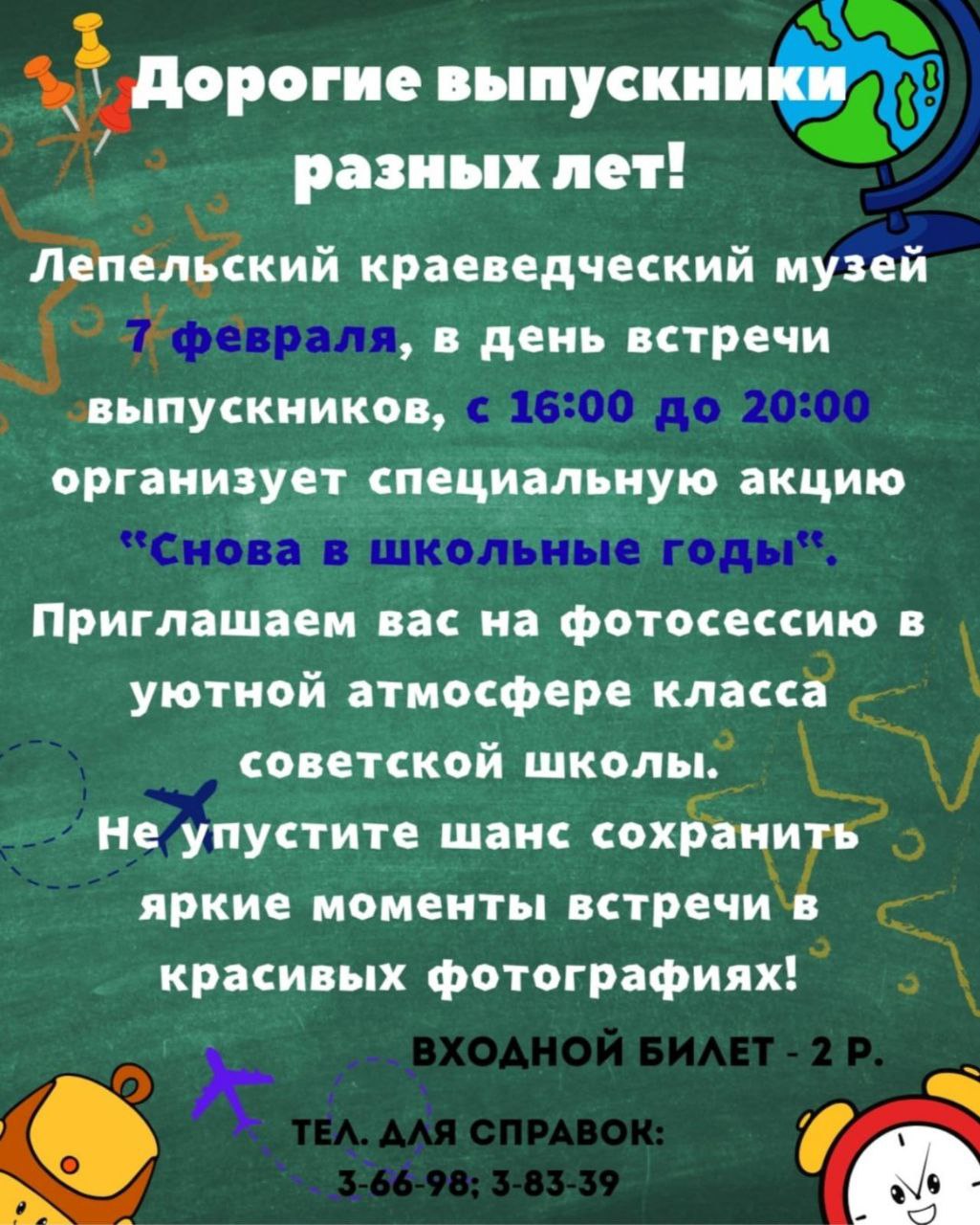 7 февраля 2026 года в учреждениях образования Лепельщины состоятся Вечера встречи с выпускниками.