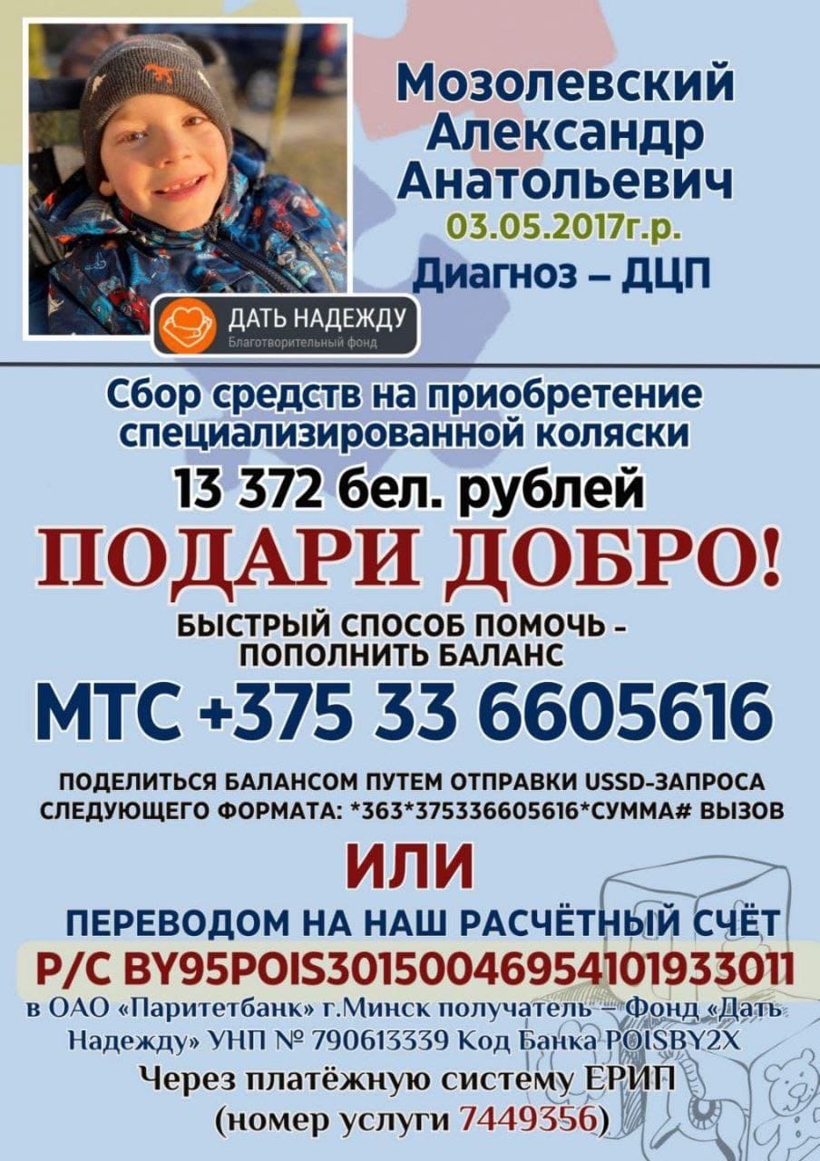 Помочь Диме можно, пополнив баланс МТС +375 33 996 00 75